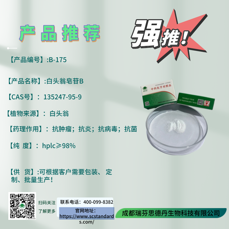 白頭翁皂苷B| Pulchinenoside B| 135247-95-9|成都瑞芬思德丹生物科技有限公司