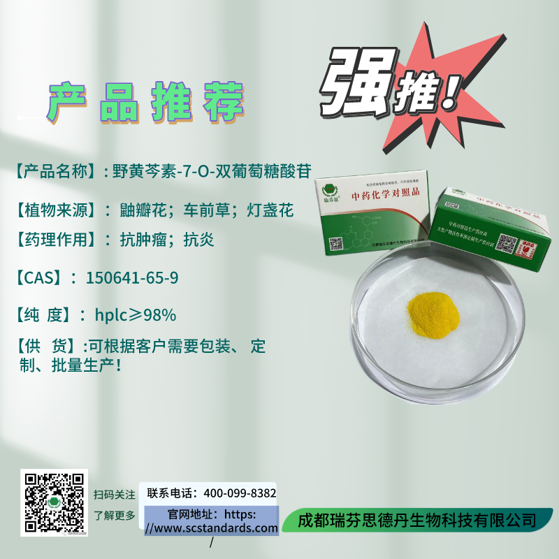 野黃芩素-7-O-雙葡萄糖酸苷|Scutellarein-7-O-diglucuronide|150641-65-9|成都瑞芬思德丹生物科技有限公司