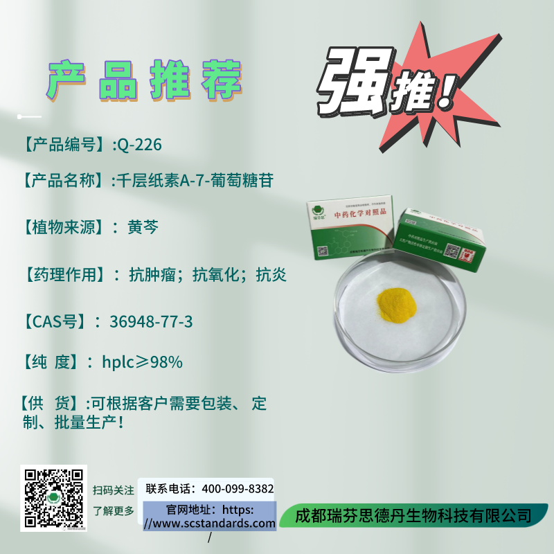 本公司提供產品推薦用于定性對照、藥理研究;不建議定量、標準含測、藥品原料使用
